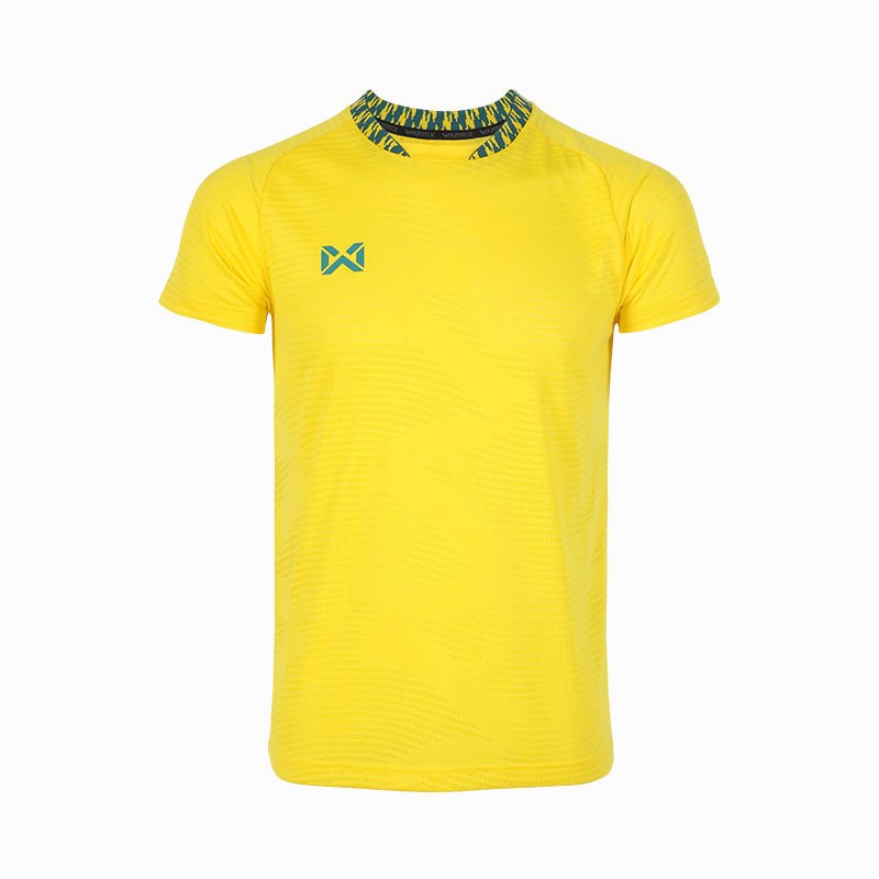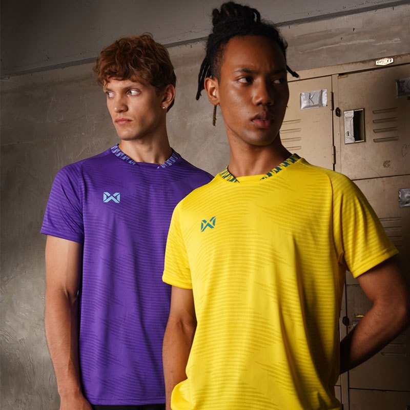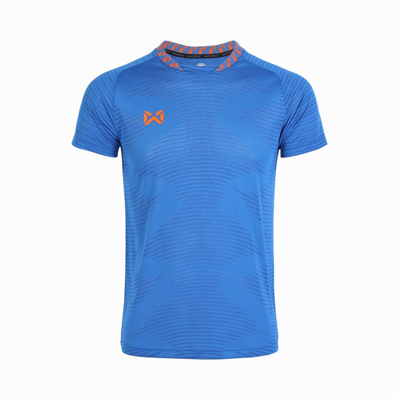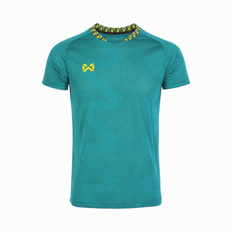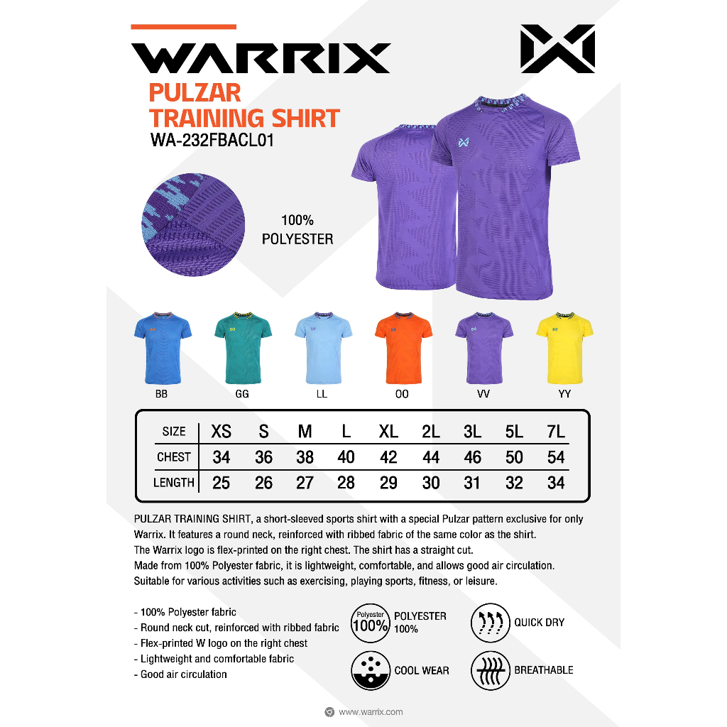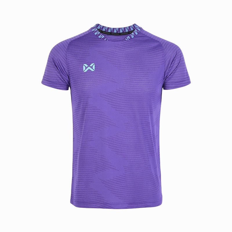 The PULZAR Training Shirt is a short-sleeved sports shirt with a unique Pulzar pattern exclusive to Warrix. It features a round neckline and is reinforced with ribbed fabric at the collar, all in a matching color tone with the shirt. The Warrix logo is flex-printed on the right side of the chest, and the shirt is designed with a regular fit for men.