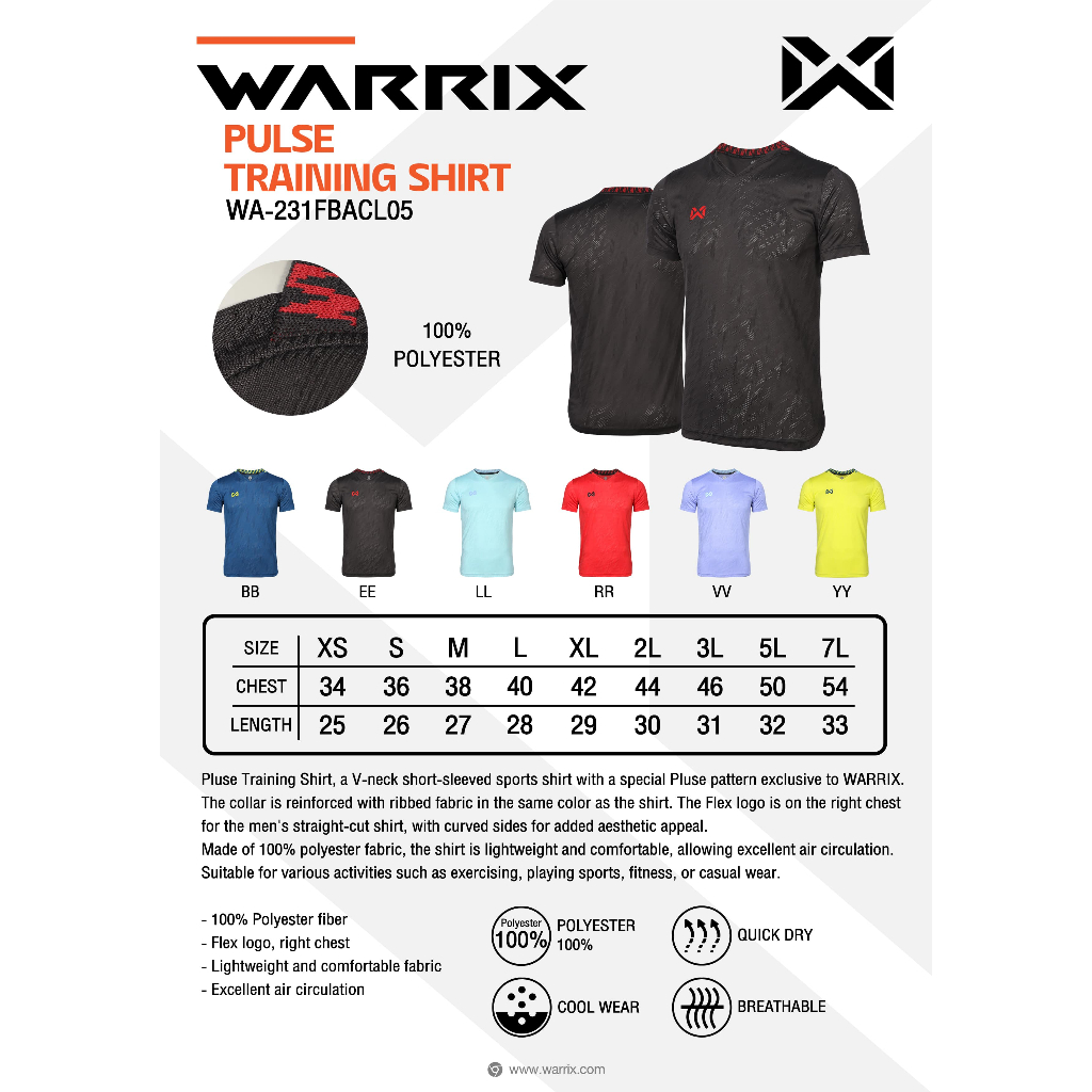 Pluse Training Shirt, V-neck, short sleeve sports shirt. The shirt is woven with a special Pluse pattern, only for Warix. The collar is reinforced with stitching.