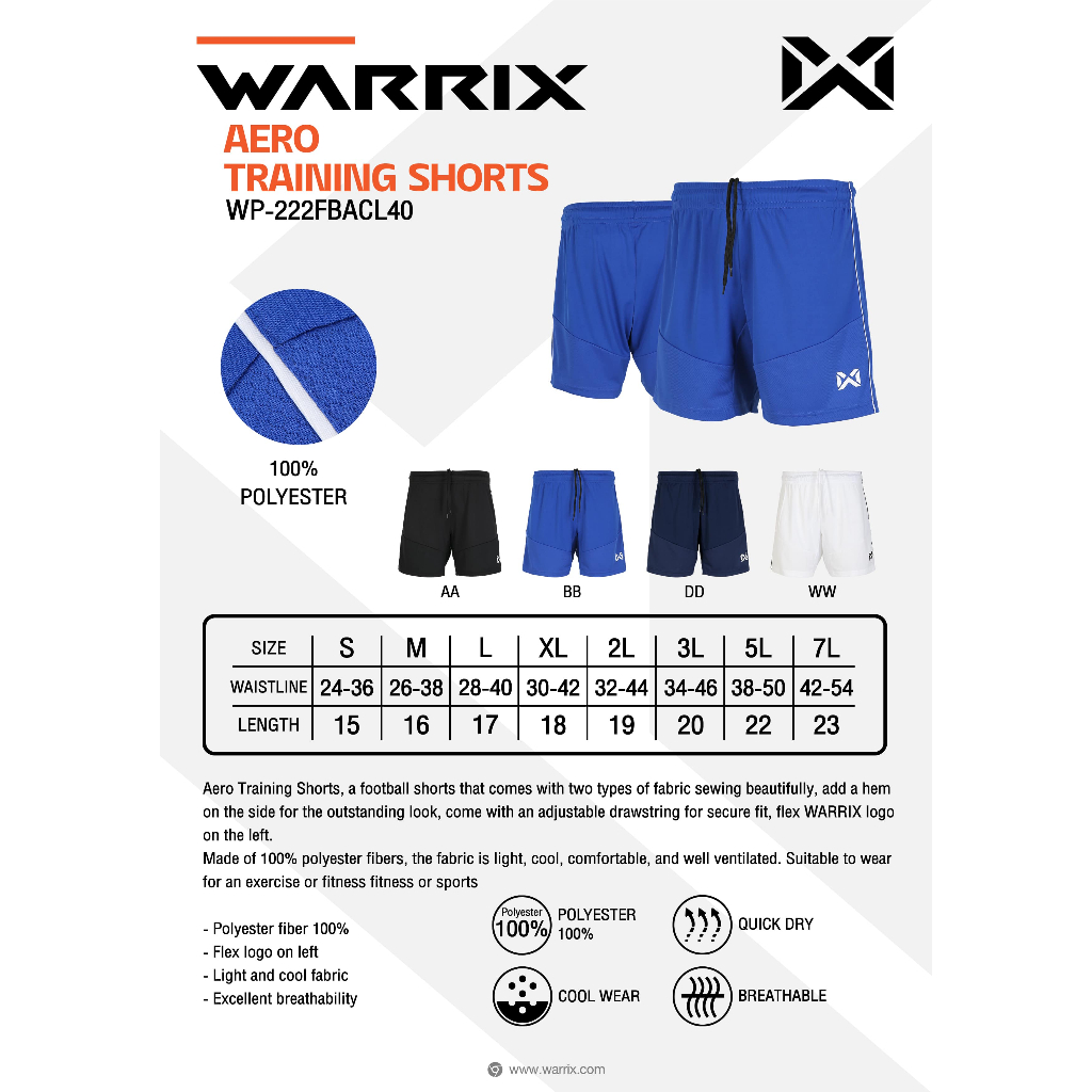 Aero Training Shorts, a football shorts that comes with two types of fabric sewing beautifully, add a hem on the side for the outstanding look, come with an adjustable drawstring for secure fit, flex WARRIX logo on the left.