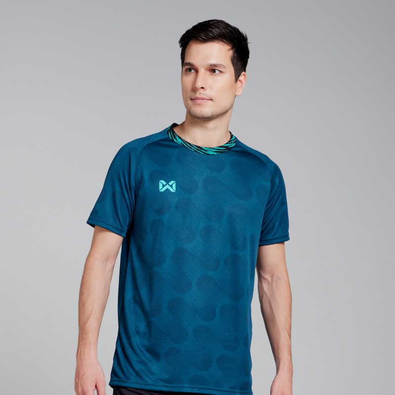 FLASH TRAINING SHIRT Short-sleeved sports training shirt, cut with sloped shoulders, Jacquard woven shirt, Flat knit collar, Warrix logo flex on the right chest, straight front hem, curved back, 100% polyester fabric, lightweight, cool, breathable, suitable for exercise, sports, fitness or travel.