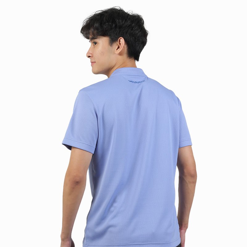The ‘Bubble’ fabric is designed to allow the shirt to breathe well. It’s comfortable to wear with soft fabric that is wrinkle free. With a special weaving technique, the polo shirt looks dimensional. Chinese collar polo shirt design, front embroidered Warrix logo and screen printed Warrix logo on the back.